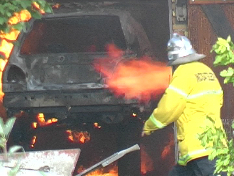 Under reparation af en bil i en udbygning til en privat ejendom i Gøngeherred udbrød der brand, som hurtigt bredte sig.