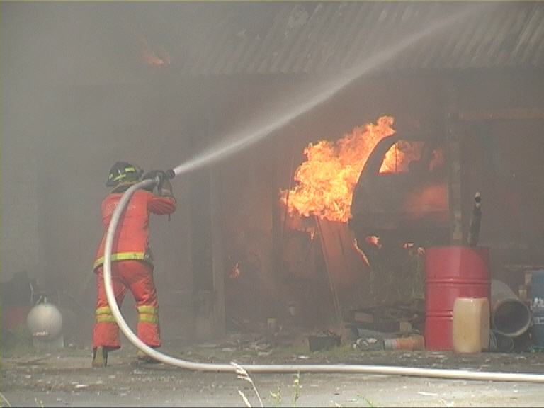 Under reparation af en bil i en udbygning til en privat ejendom i Gøngeherred udbrød der brand, som hurtigt bredte sig.