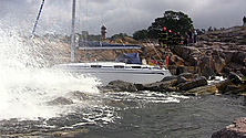 Tysk yacht slået ind mod klippekyst i Sandvig